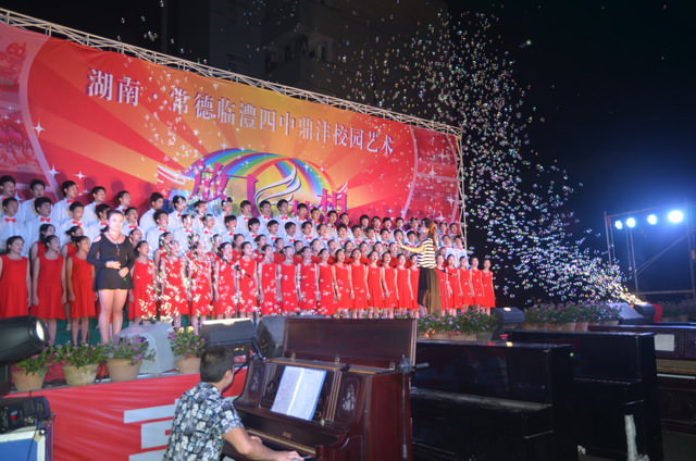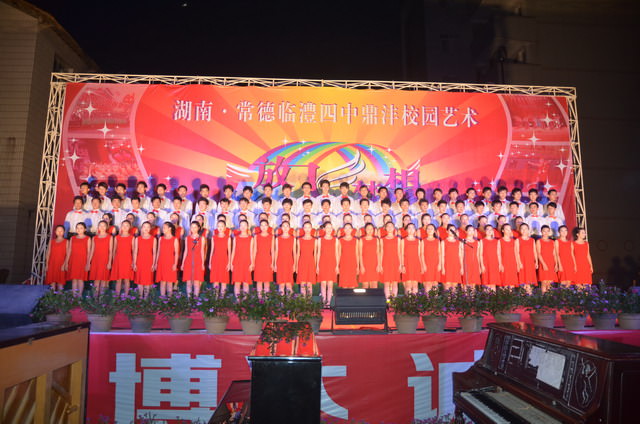 座談會后,9月10日晚,常德臨澧縣人民政府副縣長鄭海濤同志與湖南鼎灃投資集團有限公司董事長張照耀先生、市民政局慈善總會祝安順主任、臨澧縣教育局局長劉朝年、縣文廣局局長吳景華及學校領導班子一行參加臨澧四中鼎灃校園藝術節活動。